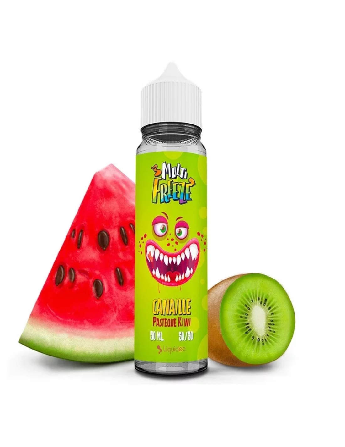 Entdecken Sie Canaille - Multi Freeze von Liquideo, ein erfrischendes E-Liquid, das die saftige Süße der Wassermelone mit der Säure des Kiwis und einer intensiven Frische vereint. Perfekt für Liebhaber von fruchtigen und belebenden Aromen, verspricht diese einzigartige Mischung in 50 ml mit einem PG/VG-Verhältnis von 50/50 ein köstliches und unvergessliches Dampferlebnis. Erhältlich ohne Nikotin, können Sie nach Belieben Nikotin-Booster hinzufügen.