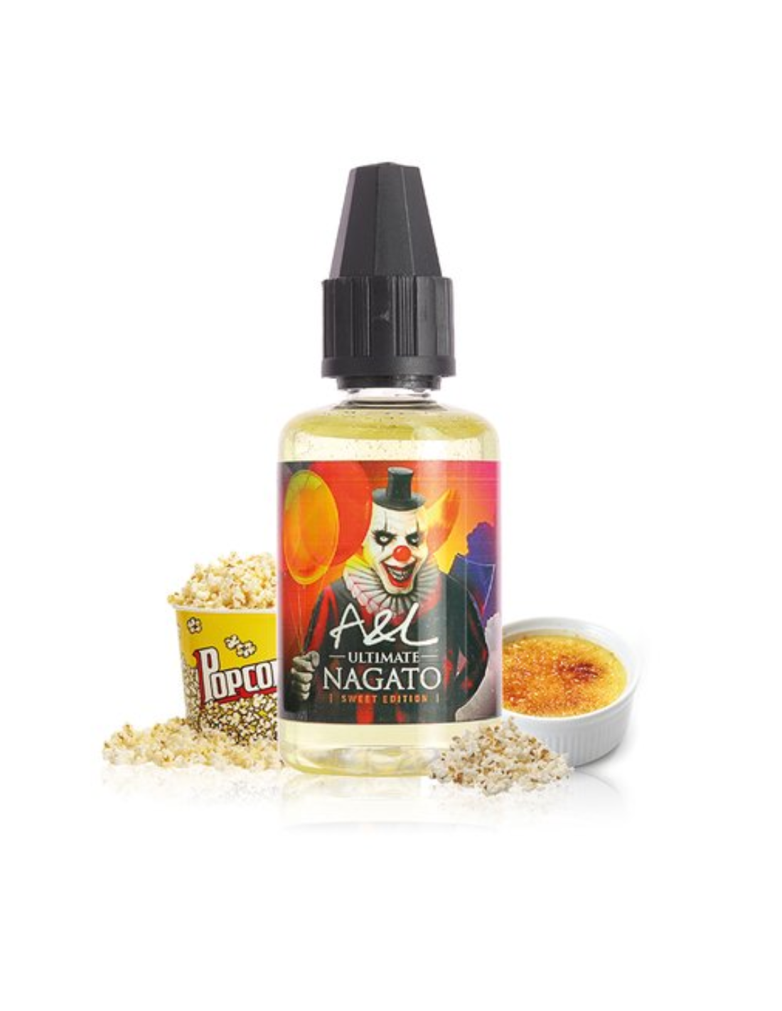 Découvrez l'arôme concentré Nagato (Sweet Edition) de A&L en format 30 ml. Savourez l'alliance gourmande du pop-corn caramélisé et de la crème brûlée pour une vape riche et réconfortante. Idéal pour les amateurs de saveurs dessert, cet arôme est parfait pour vos créations DIY, offrant une expérience de vape unique et délicieuse.