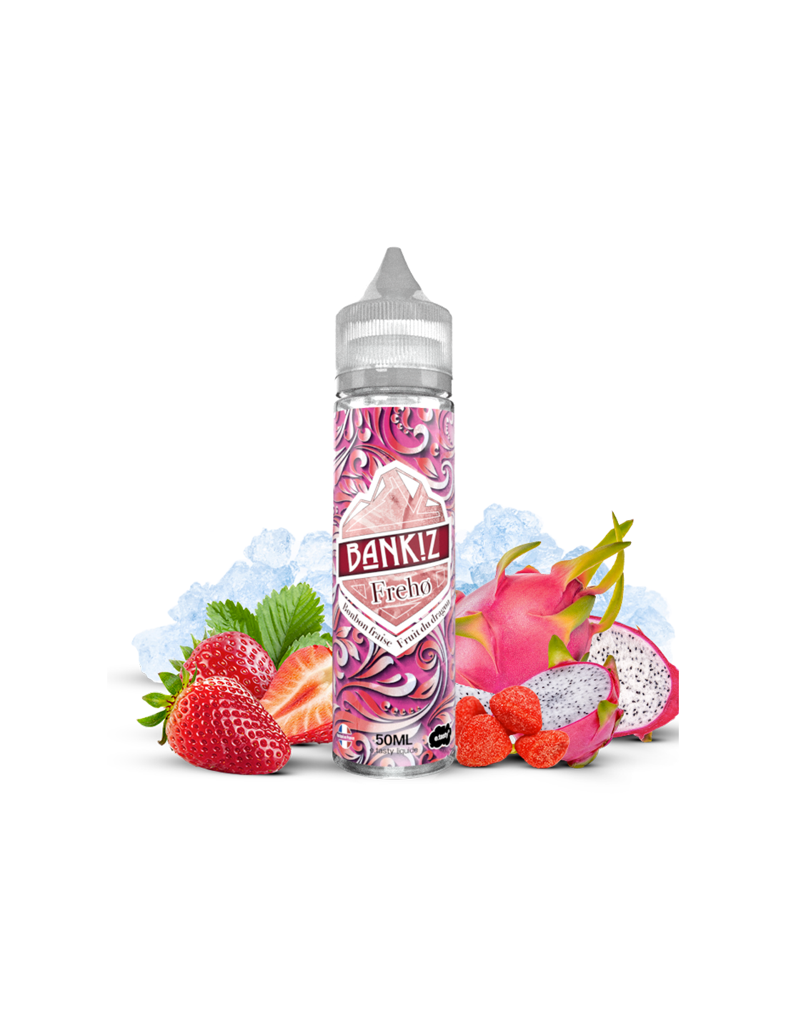 saveur : bonbon fraise, fruit du dragon , frais