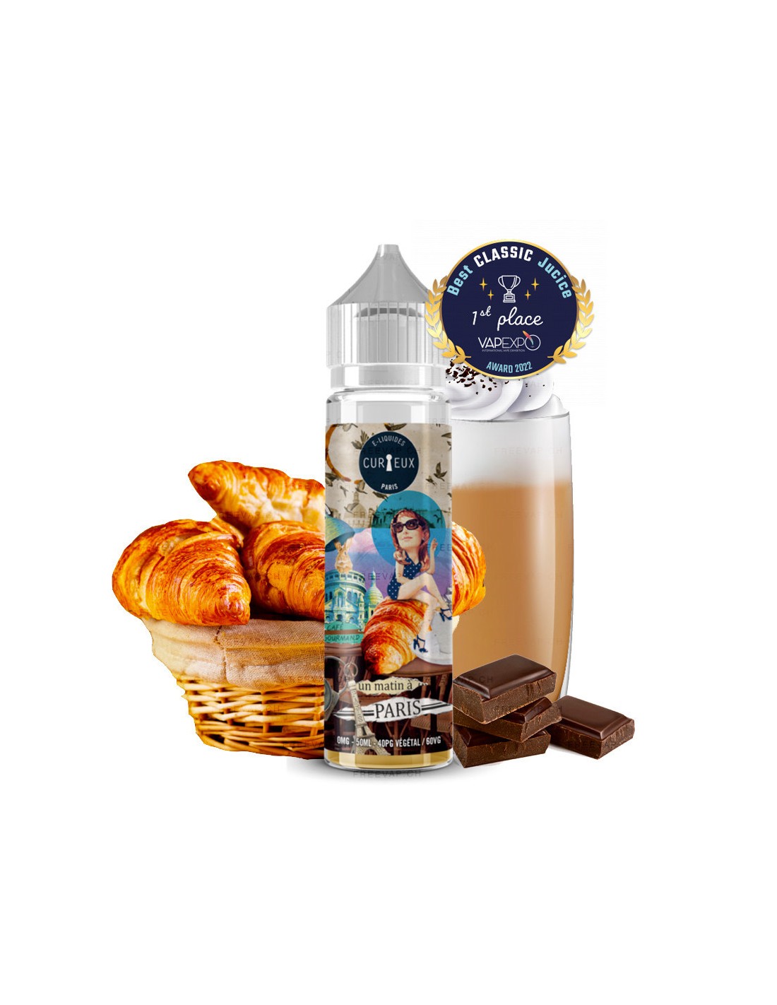 Découvrez Un Matin À Paris - Hexagone by Curieux, un e-liquide qui capture l'essence d'un petit-déjeuner parisien avec des saveurs riches de café et de croissant. Parfait pour les amateurs de vapes gourmandes et authentiques, ce mélange unique en 50 ml promet une expérience de vape délicieuse et inoubliable. Disponible sans nicotine, il permet d'ajouter des boosters selon vos préférences.