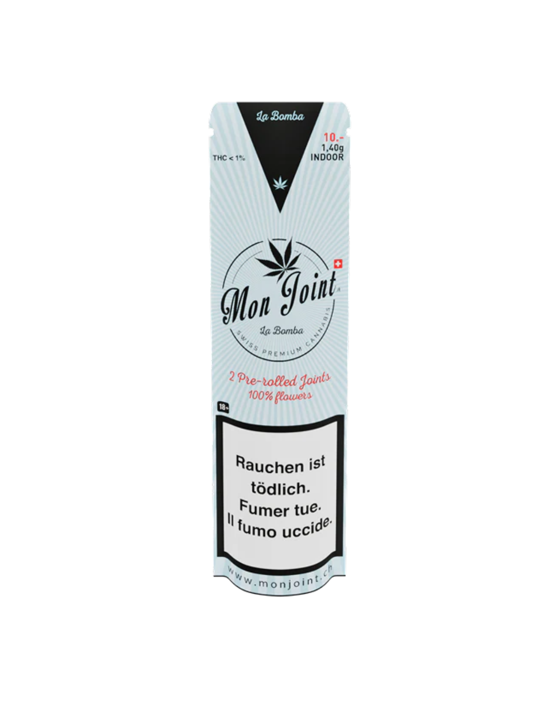 Immergiti in un'esperienza CBD senza precedenti con "La Bomba", simbolo di qualità e purezza svizzera. Questo esclusivo pacchetto offre due joint pre-rollati meticolosamente preparati con fiori di CBD Calanda Kush di altissima qualità, coltivati indoor per garantire la massima potenza e un profilo aromatico ricco e complesso.