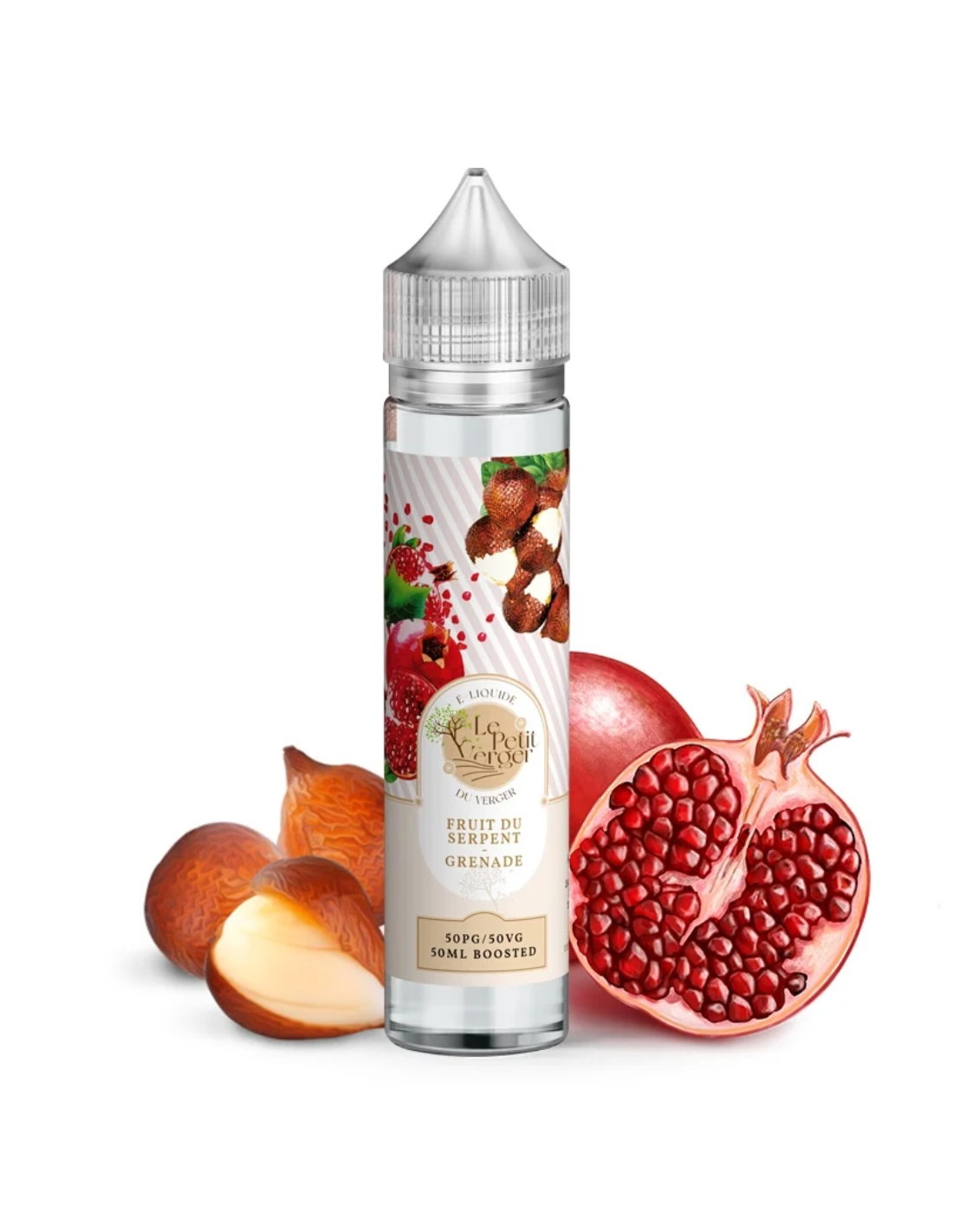 Scopri l'e-liquid "Melograno Frutto del Serpente" della gamma Le Petit Verger, una combinazione esotica e fruttata che unisce la dolcezza acidula del melograno con il sapore unico e tropicale del frutto del serpente. Questo flacone da 50 ml, con un rapporto equilibrato di 50PG/50VG, offre uno svapo ricco di aromi e generoso di vapore, ideale per gli amanti dei sapori originali e rinfrescanti.