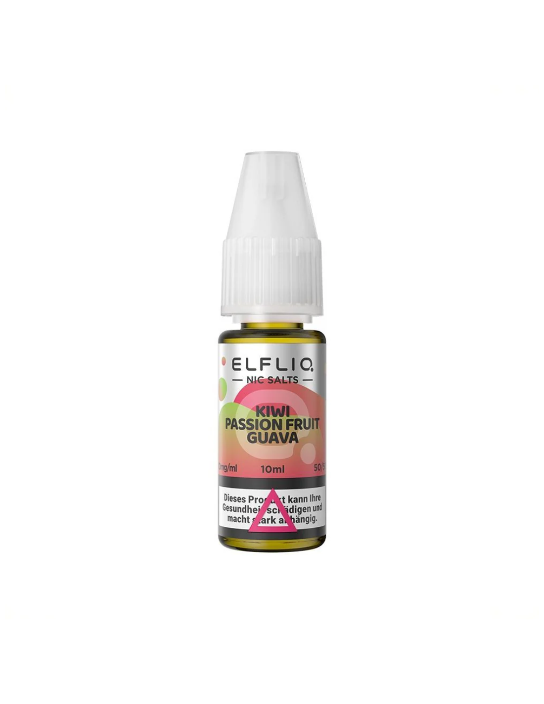 Scopri ElfLiq Kiwi Passionfruit Guava di Elf Bar, un mix esotico di kiwi, frutto della passione e guava. Disponibile con 10 mg o 20 mg di sali di nicotina, in formato 10 ml con rapporto 50PG/50VG, per uno svapo dolce, fruttato e bilanciato.