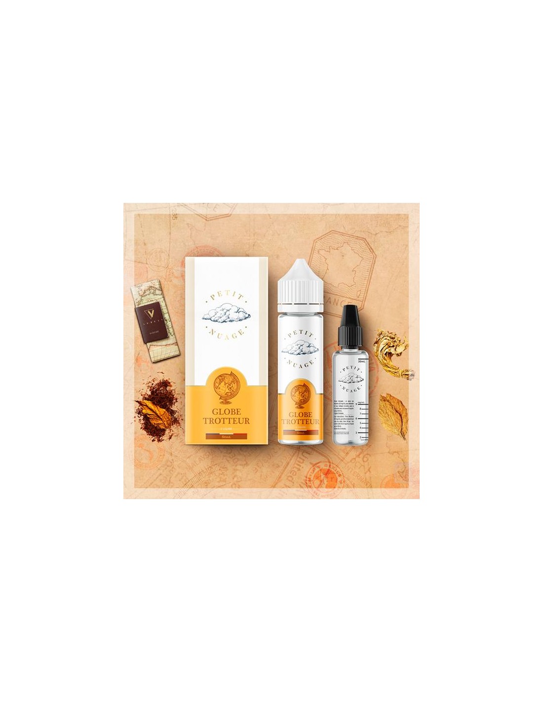 Globe Trotteur di Petit Nuage è un e-liquid al tabacco biondo dal gusto morbido e naturale. In formato da 60 ml – 50PG/50VG, è ideale per uno svapo quotidiano equilibrato, classico e piacevole.